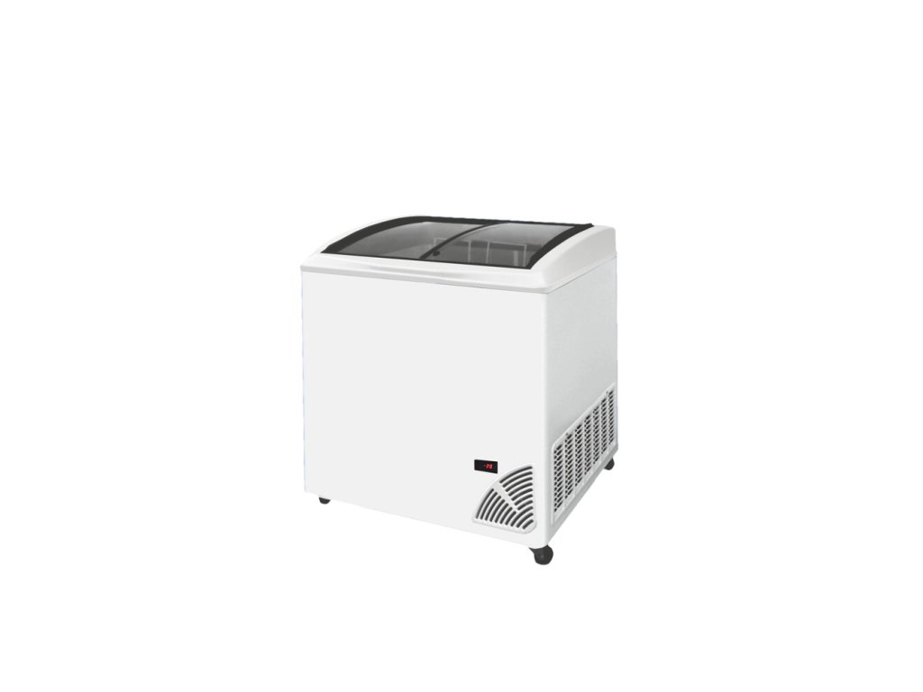 Elegantní profesionál! Mrazák 149 l s oblým sklem pro prémiový vzhled. 2 koše, zámek, kolečka. Perfektní pro čistý a moderní impulzní prodej!