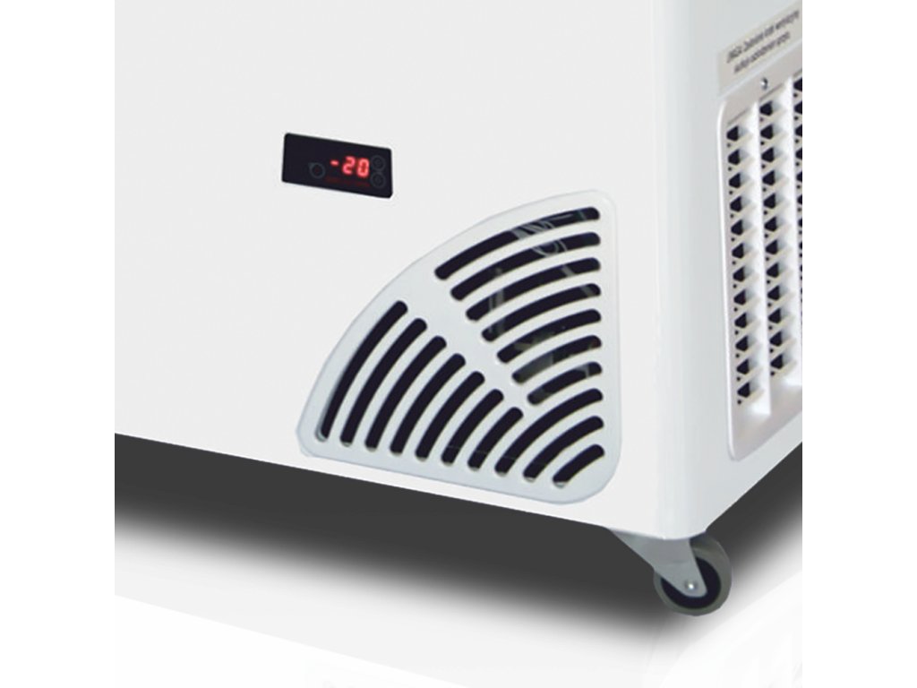 - Snadná manipulace: Standardně dodávaná kolečka výrazně usnadňují přemístění mrazáku při úklidu nebo změně dispozice prodejny.