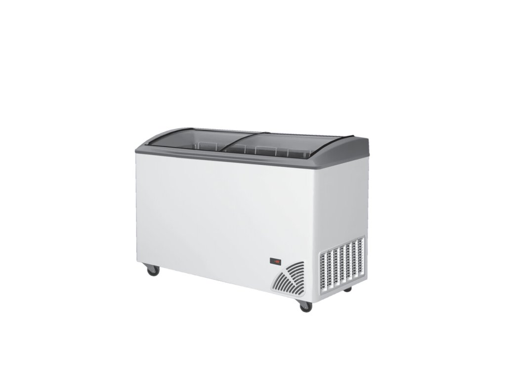 - Oblá skla: Dvě posuvná oblá víka z tvrzeného skla jsou vybavena speciální termickou vrstvou, která zlepšuje izolaci, snižuje rosení a dává zákazníkům perfektní výhled na zboží.