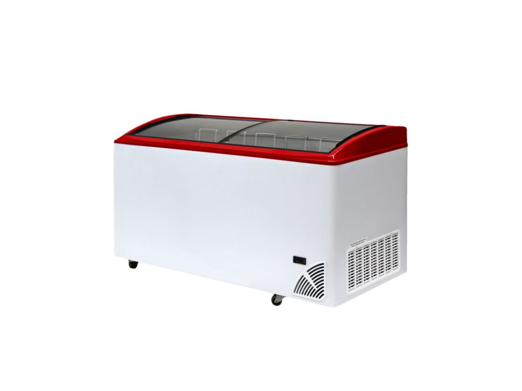 - Prosklená víka: Mraznička je vybavena dvěma prosklenými posuvnými oblými víky, která umožňují skvělou prezentaci produktů a snadný přístup.