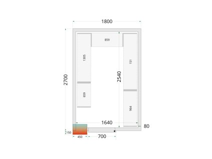 Komplet stavebnicový chladicí box s 80 mm izolací bez chladicí jednotky, rozměry 150 x 270 x 220 ( š x h x v) cm, objem 6,94 m3.