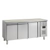 Chladicí stůl s lemem pro dokonalou hygienu a efektivitu. Všechny suroviny po ruce, bez nepořádku za stolem. Ideální umístění ke zdi.