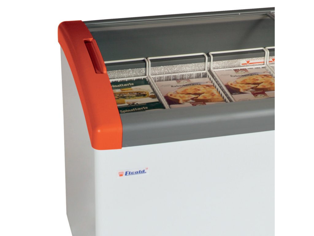 Prosklená oblý víka: Mraznička je vybavena dvěma prosklenými posuvnými oblými víky, která umožňují snadný přístup k uloženým potravinám a zároveň zajišťují jejich přehlednou prezentaci.
