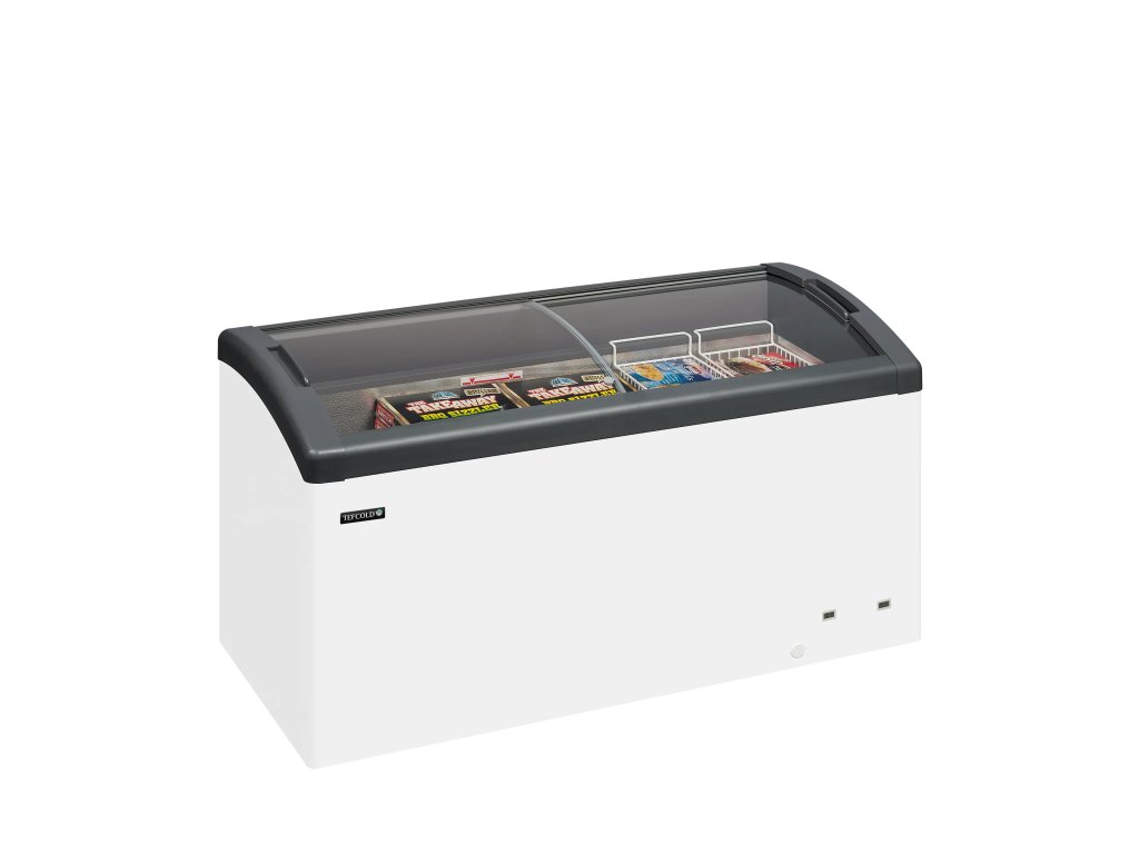 Elcold FOCUS 151 – Prosklený pultový mrazák, 2-oblá posuvná víka, LED, 302 l, bílý, šedý lem