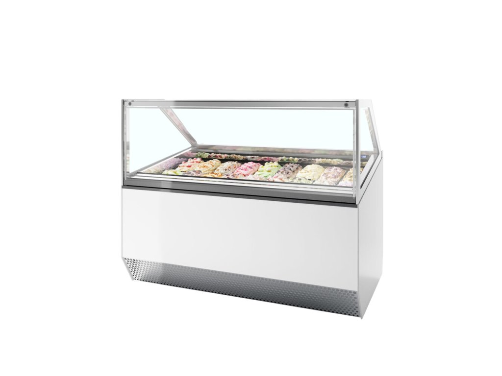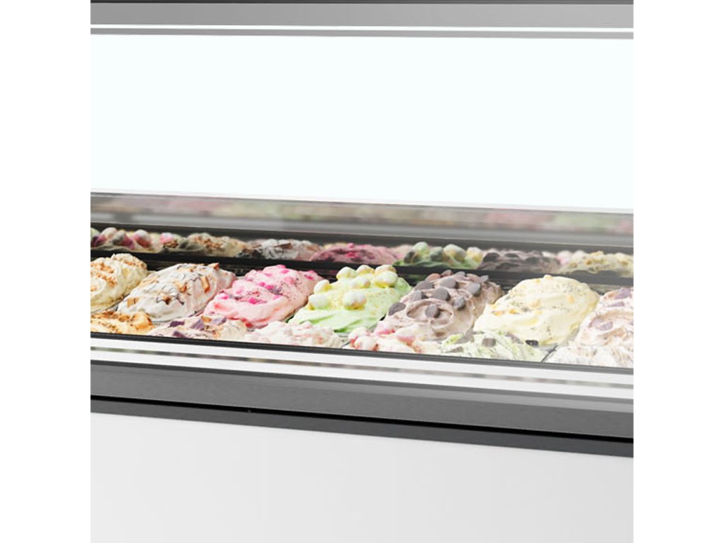 - Skvělá viditelnost produktů: Díky modernímu plochému sklu, které nabízí úžasnou prezentaci zmrzliny.