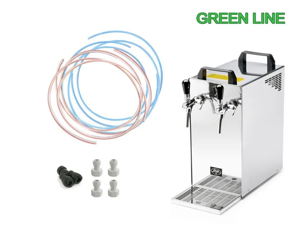 - Vše potřebné pro zapojení: Ušetřete si starosti se sháněním příslušenství. Balení obsahuje kompletní sadu hadic (pivní i vzduchové), rychlospojky a Y-kus pro rozvedení vzduchu do dvou sudů.