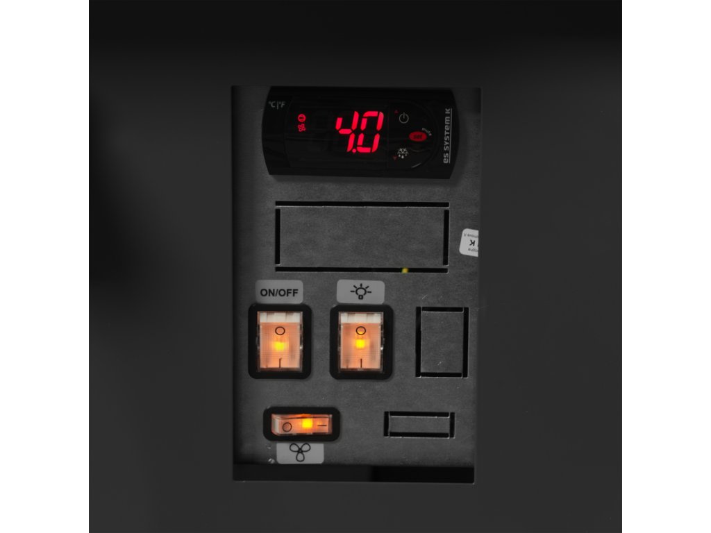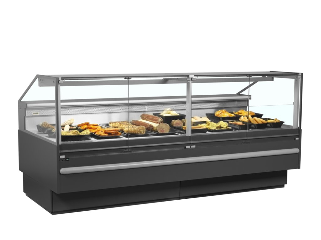 - Dominantní prezentace: Obrovská výstavní plocha (hloubka 825 mm) z nerezové oceli a horní LED osvětlení zaručují, že vaše produkty budou vždy perfektně viditelné a atraktivní.