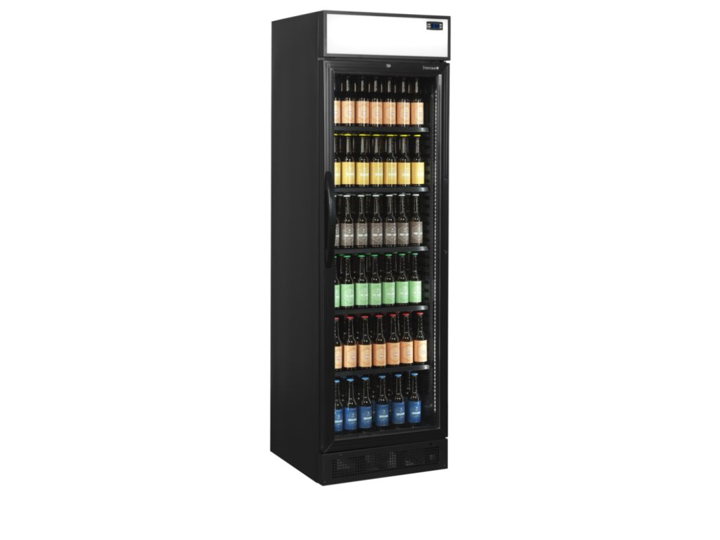 TEFCOLD CEV 435 CP BLACK – Chladicí vitrína, 1-křídlové dveře, s reklamním panelem, 345 l, černá