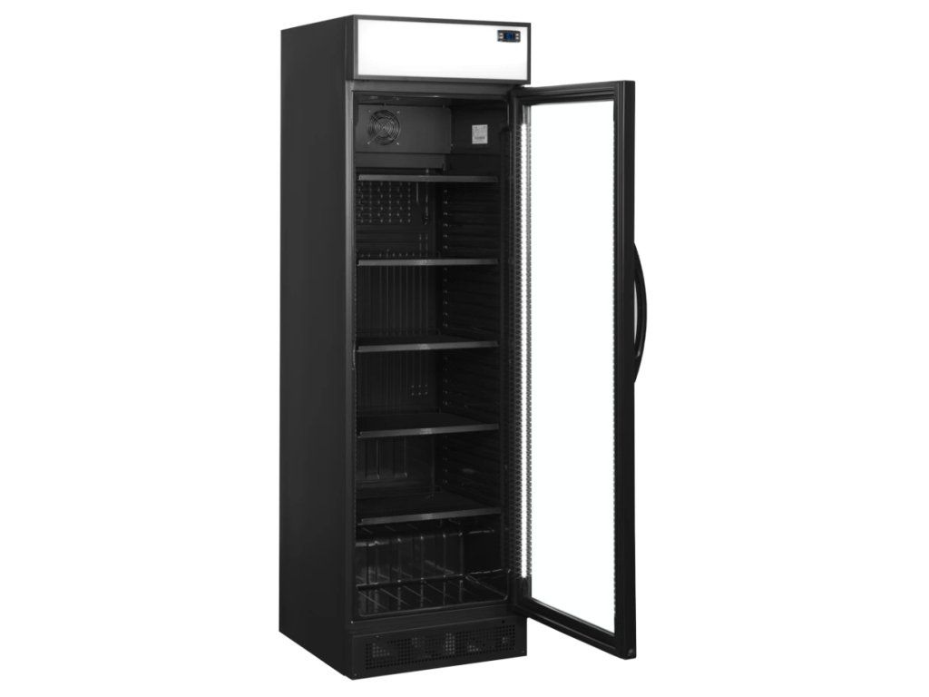 TEFCOLD CEV 435 CP BLACK – Prosklená lednice, s reklamním panelem, 345 l, černá