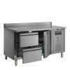 Chytrý chladicí stůl (272 l) s kombinací dveří a šuplíků. Perfektní organizace a bleskový přístup k surovinám. Pracovní deska s lemem.
