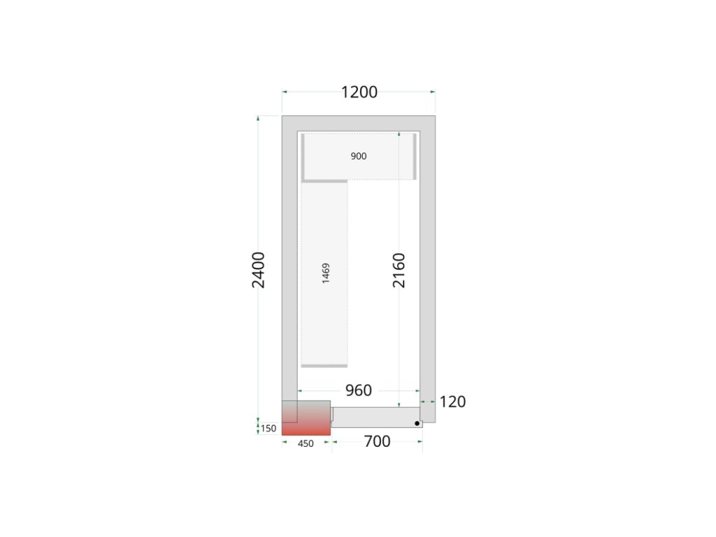Komplet stavebnicový mrazicí box se 120 mm izolací bez mrazicí jednotky, rozměry 120 x 240 x 220 ( š x h x v) cm, objem 4,06 m³.