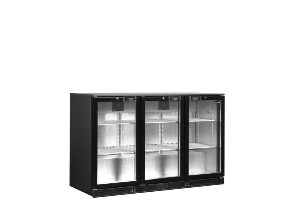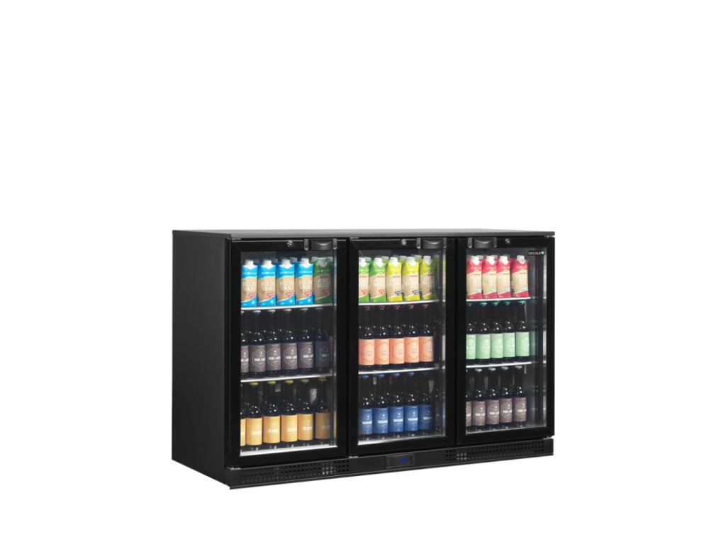 TEFCOLD DB301H-3 – Prosklený minibar s 3 posuvnými dveřmi, černý (278 l)