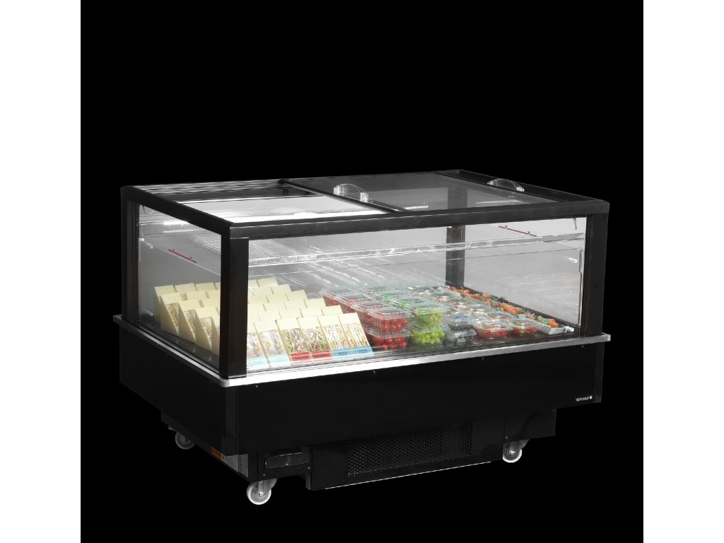 snadné přepínání mezi chlazením a mrazením|teplotní třída 3M1/3L1|prosklené bočnice pro lepší prezentaci produktů|ventilované chlazení|vnitřní LED osvětlení|posuvná prosklená víka|ovladač s funkcí Bluetooth a konektivitou NFC|export dat v souladu s HACCP|lišty proti nárazu z nerezové oceli ze všech stran|cenovkové lišty součástí|kolečka, 2 s brzdou
