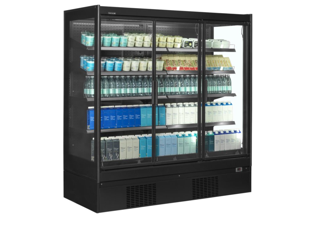 TEFCOLD EXTRA 1875 CD – Přístěnná chladicí vitrína, 3-křídlové dveře, šířka 198 cm, černá