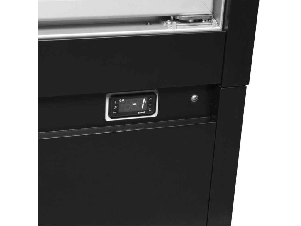 Černý designový mrazák ! Zapoj a prodávej. Dveře s trojitým sklem šetří energii. Velká plocha 2,72 m² pro maximální zisk bez starostí.
