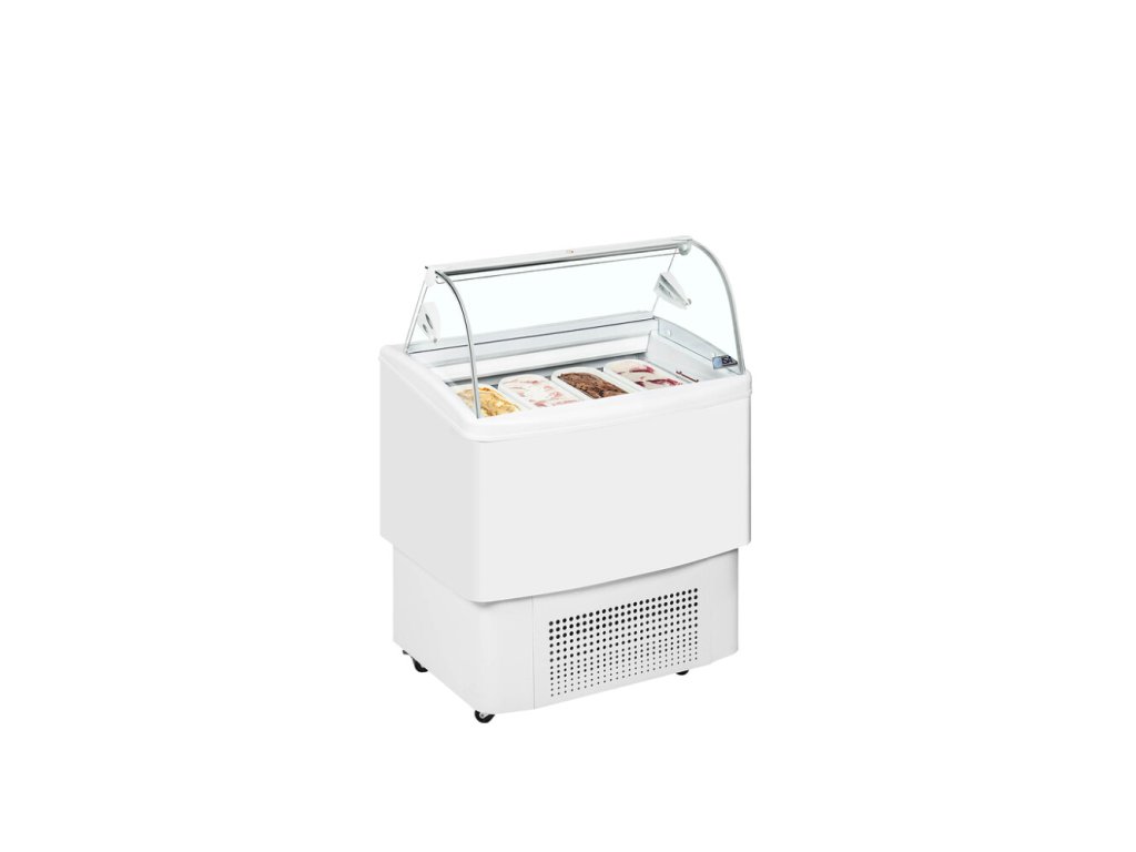 FIJI 4 – Zmrzlinová vitrína, ventilované chlazení, na 4+4x 5 l vaničky, bílá