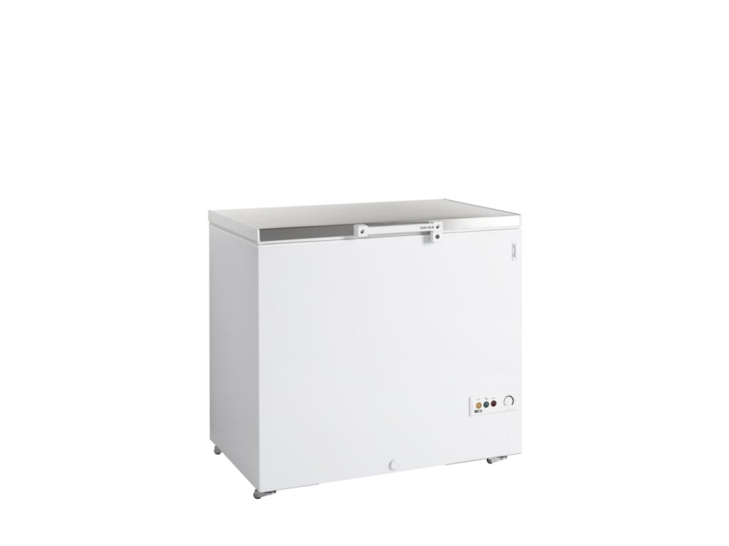 - Design a provedení: Bílá barva v kombinaci s nerezovým víkem dodává mrazáku moderní a profesionální vzhled, který se hodí do každé kuchyně či provozu.