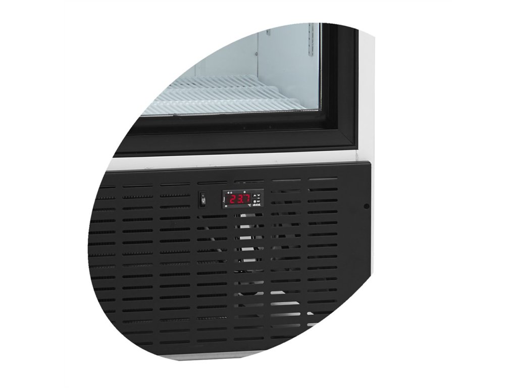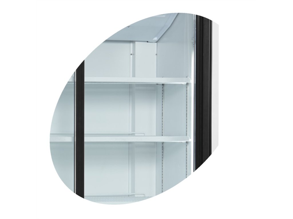 Velká kapacita: Nenechte se zmást kompaktním designem. S objemem 540 litrů a 5 plně nastavitelnými policemi snadno vystavíte široký sortiment nápojů, sendvičů, mléčných výrobků i salátů.