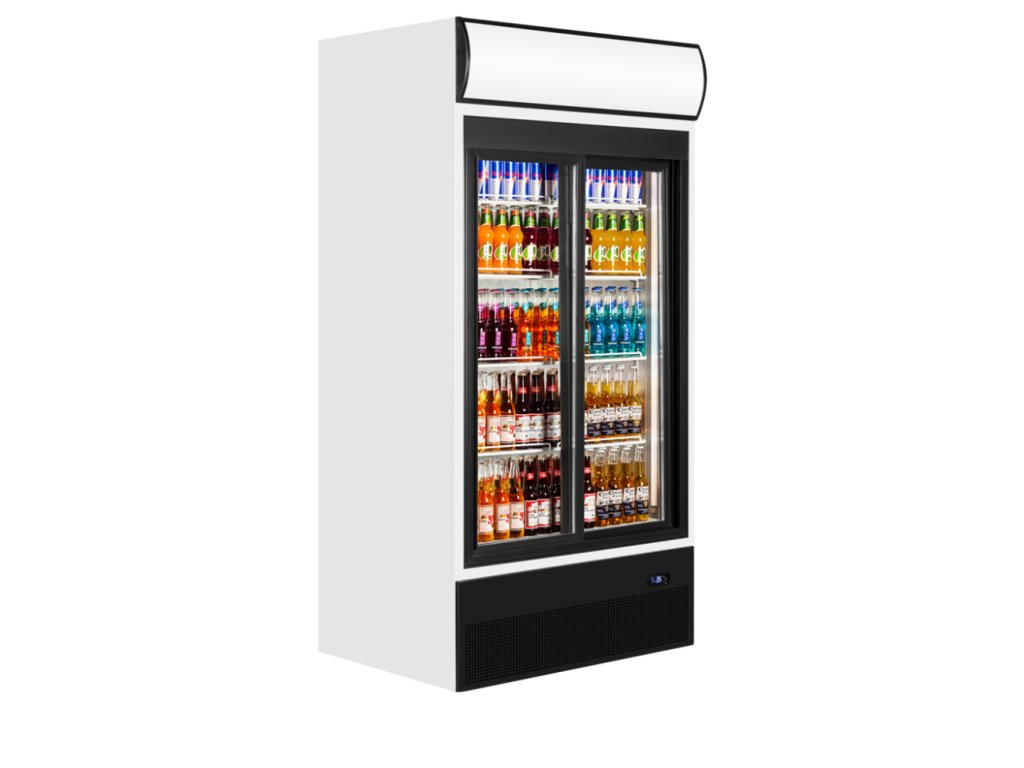 TEFCOLD FSC 1000 S – Chladicí vitrína, 2-posuvné dveře, s reklamním panelem, 524 l, bílá
