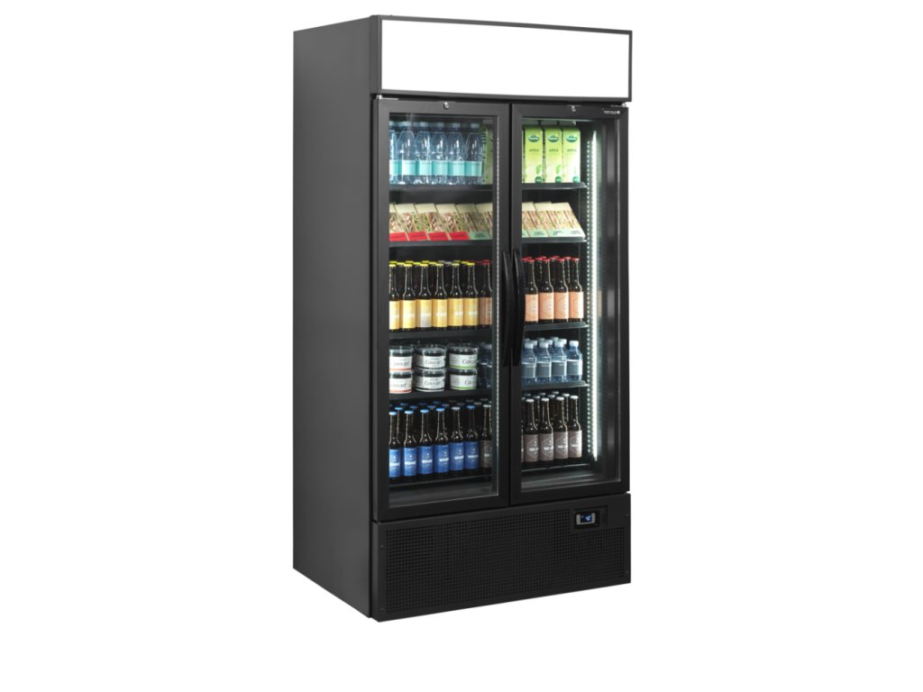 TEFCOLD FSC1000H BLACK – Chladicí vitrína, 2-křídlové dveře, s reklamním panelem, 524 l, černá