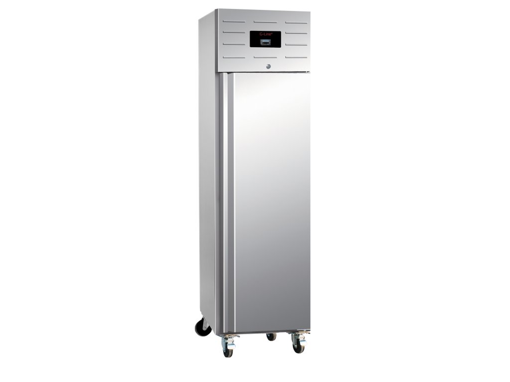 Úzká vertikální chladnička řady G je určena pro náročné kuchyňské prostředí. Je vybavena pevnými kolečky pro snadnou manipulaci a nerezovým pláštěm pro vysokou odolnost. Má nastavitelné police a je kompatibilní s gastronádobami GN1/1. Produkt s vynikajícím poměrem cena/výkon.