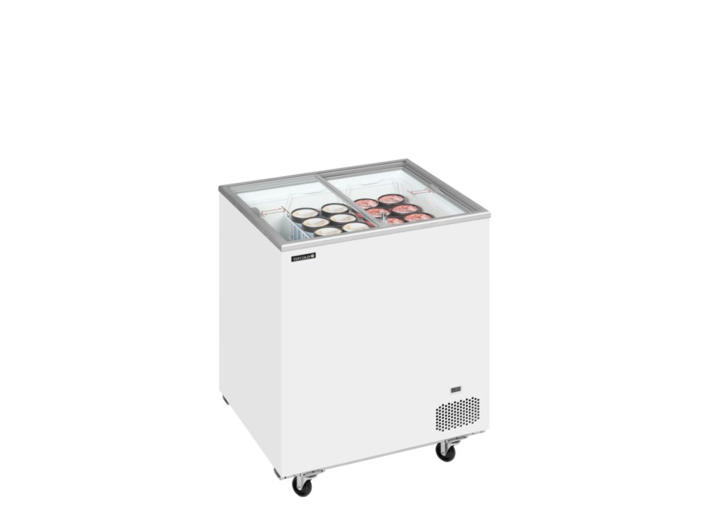 TEFCOLD IC 201 SC – Prosklený pultový mrazák, 2-rovná posuvná víka, 165 l, bílý
