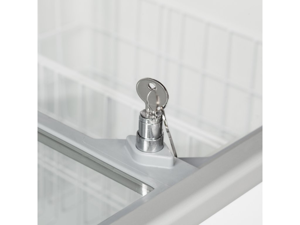 Maximalizujte prodej! Obří mrazák 486 l s proskleným víkem, zámkem a 7 koši. Perfektní pro hypermarkety a vysoký obrat zboží.