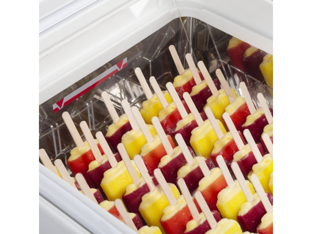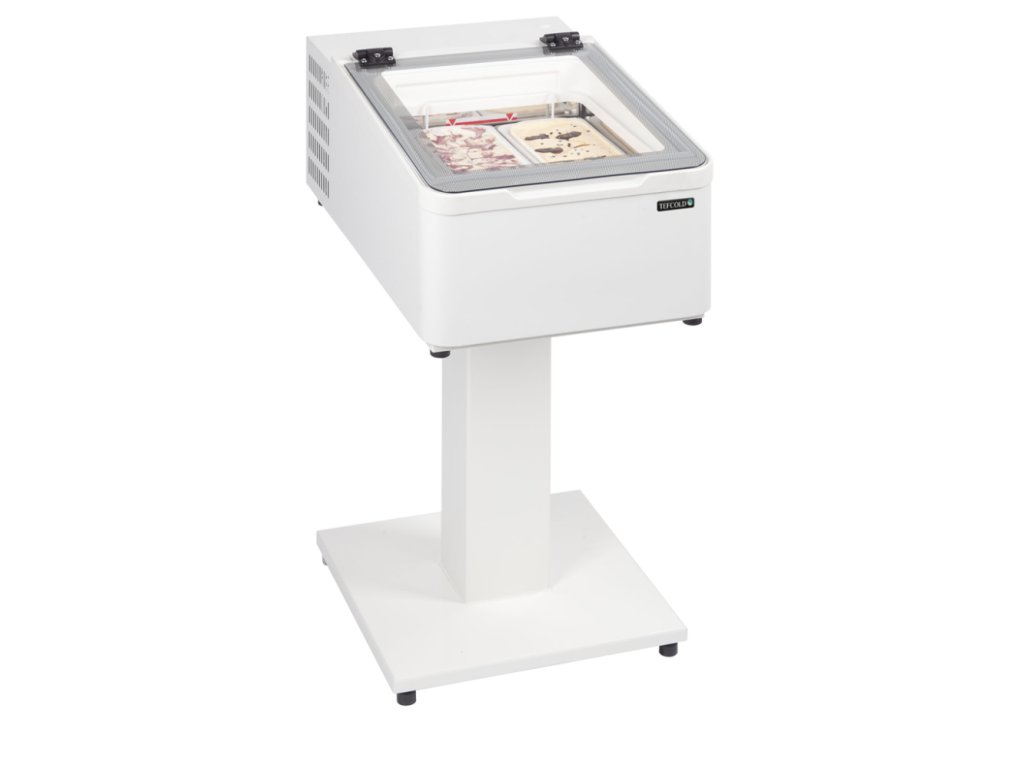 Kompaktní design Díky stolnímu provedení a promyšlené konstrukci s nakloněnou výstavní plochou maximalizuje viditelnost zmrzliny a podporuje impulzivní nákupy, i když máte k dispozici jen omezený prostor.