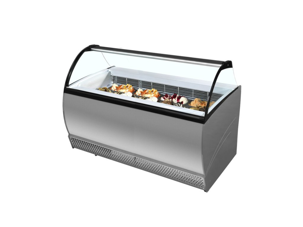 ISABELLA 13LX – Zmrzlinová vitrína, statické chlazení, na 13x 5 l vaničky, šedá