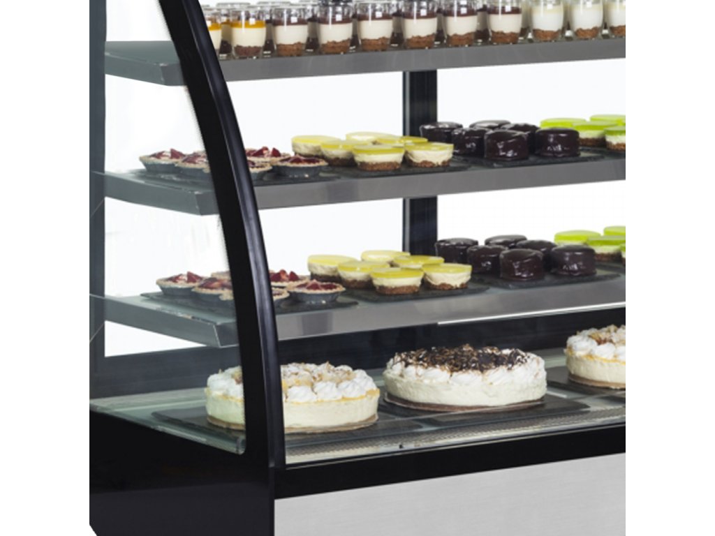 Vaše dorty jsou umělecká díla. Zaslouží si galerii, ne lednici. Cukrářská vitrína TEFCOLD LPD 900 C Black je přesně takovou galerií. Její elegantní oblé čelní sklo a čtyři patra zalitá LED světlem vytváří velkolepou scénu, která promění vaši nabídku v neodolatelné lákadlo a stane se dominantou vašeho podniku.