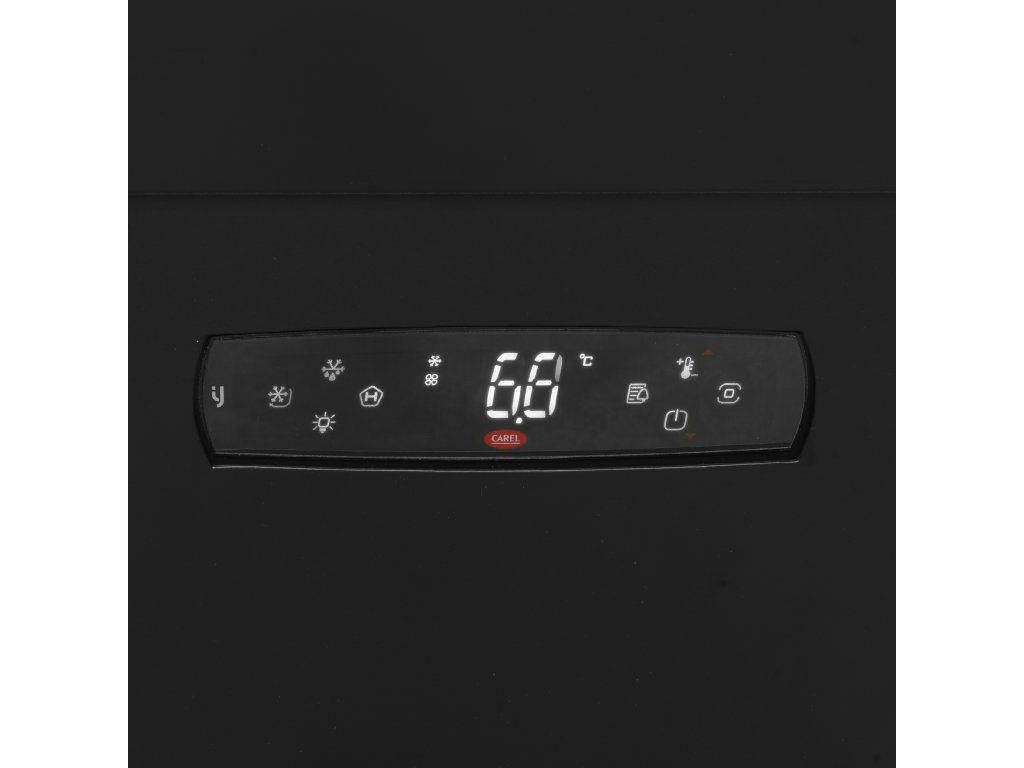 Ovládání a konektivita: Vitrína je vybavena moderním ovladačem s funkcí Bluetooth a konektivitou NFC. Tento systém umožňuje snadné sledování a export dat pro účely HACCP prostřednictvím aplikace, což zjednodušuje správu a údržbu zařízení. Ovládání osvětlení a dalších funkcí je tak snadné a intuitivní.