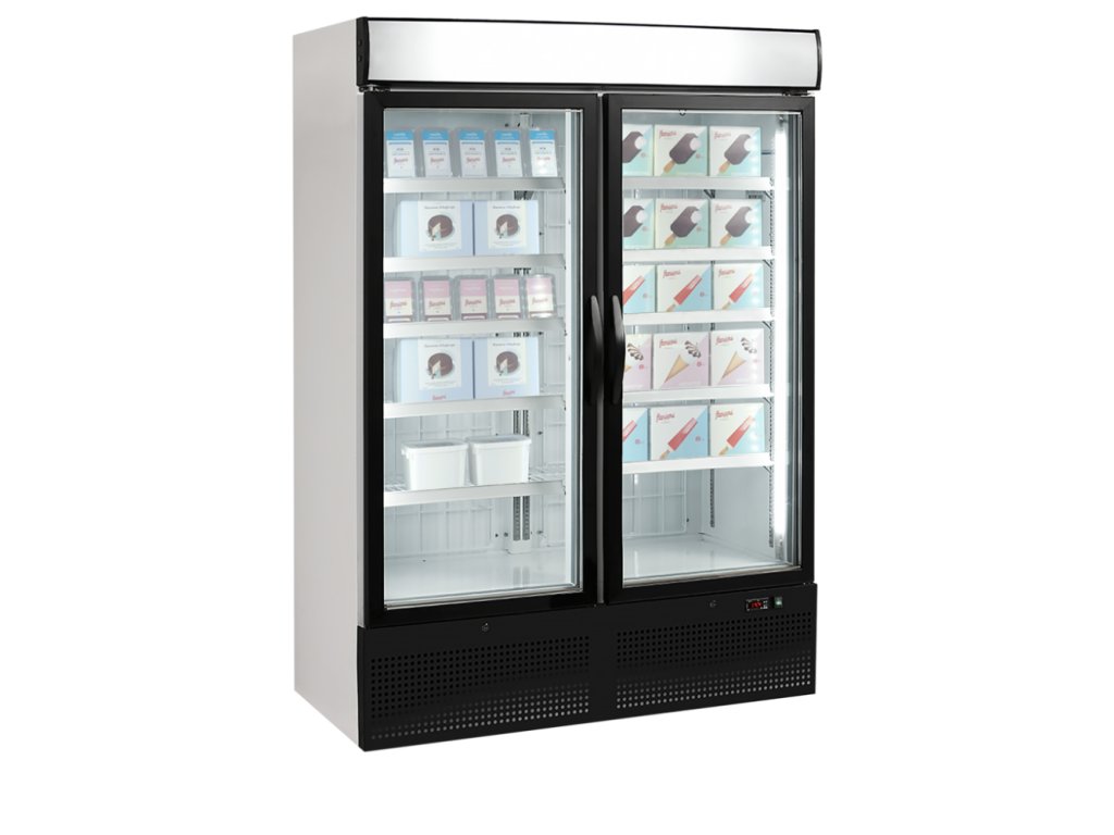TEFCOLD NF 5000 G – Mrazicí vitrína, 2-dveřová, NO FROST, s reklamním panelem, 930 l, bílá