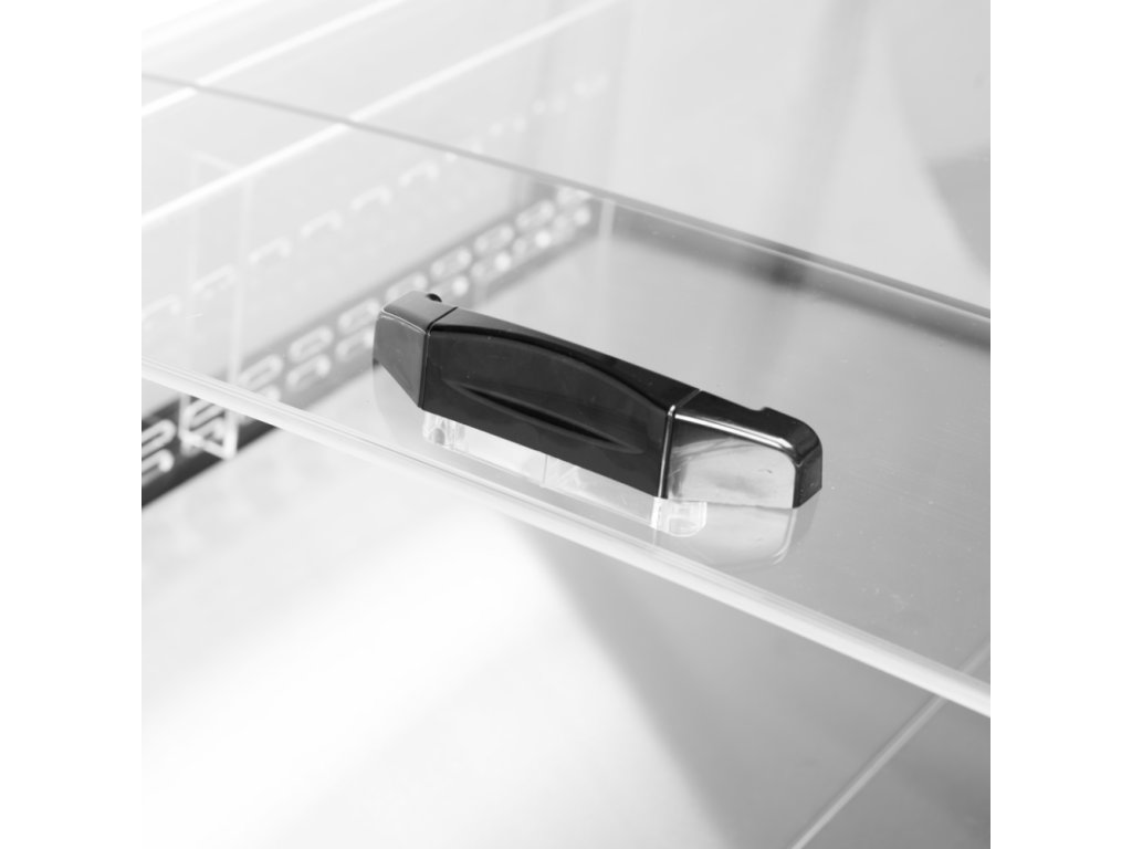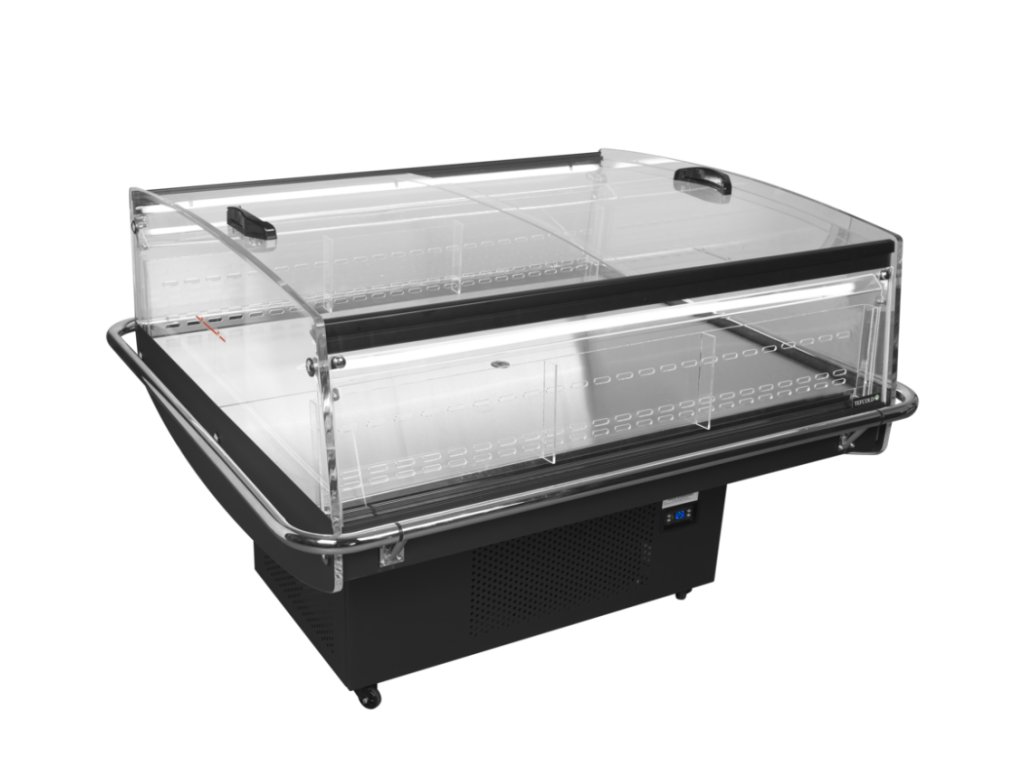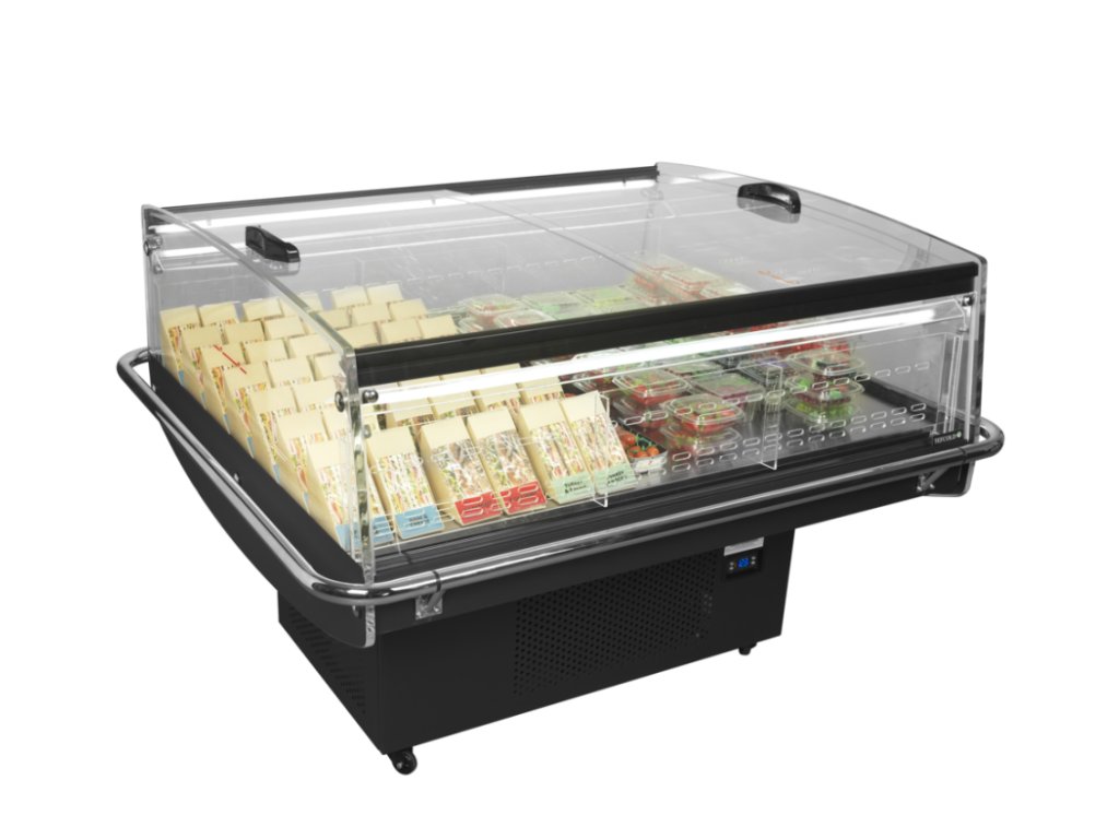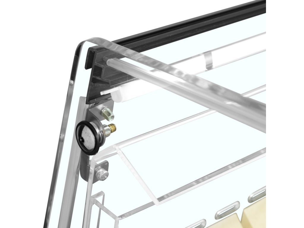 - Dokonalý výhled: Čiré plexisklo na všech čtyřech stranách a posuvná skleněná víka zajišťují, že zákazníci mají perfektní výhled na produkty z jakéhokoli úhlu.