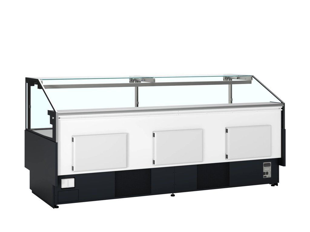 Impozantní šířka 2,5 m pro maximální nabídku ryb. Prémiový černý design s LED světlem a vanou na led zajistí neodolatelnou prezentaci a dokonalou čerstvost.