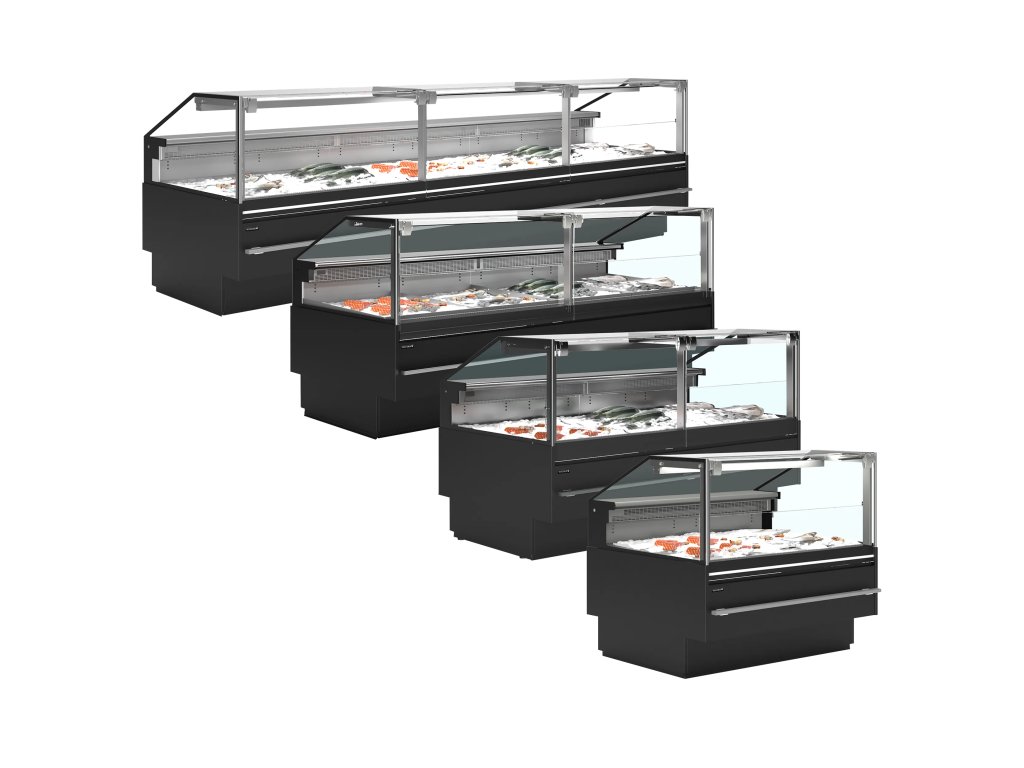 TEFCOLD SOCA-F37590B – Obslužný chladicí pult na ryby, hranatý, šířka 375 cm, černý