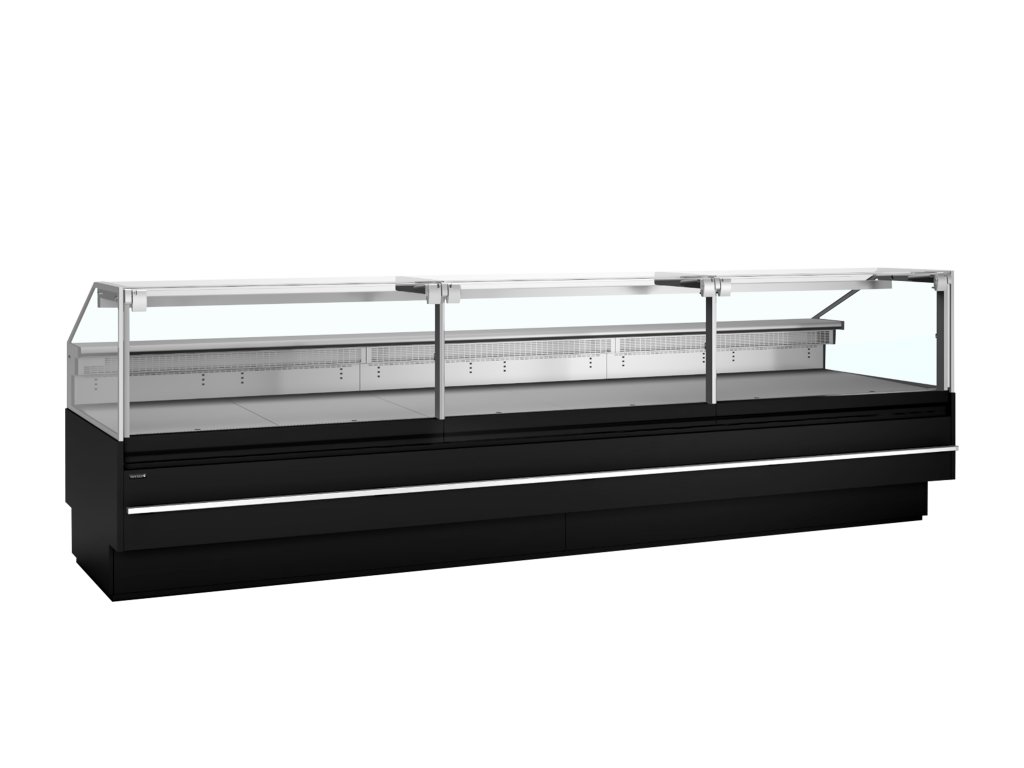 černá povrchová úprava|skvělá viditelnost produktů|výstavní plocha o hloubce 900 mm z nerezové oceli|přední sklo s ochranou proti mlžení|čelní sklo zvedací pro snadné čištění|zadní police z nerezové oceli|ventilované chlazení|teplotní třída 3M1|horní LED osvětlení|lišty proti nárazu z nerezové oceli|2 × 220-240 V zásuvky vzadu|spojovací sada jako volitelné příslušenství