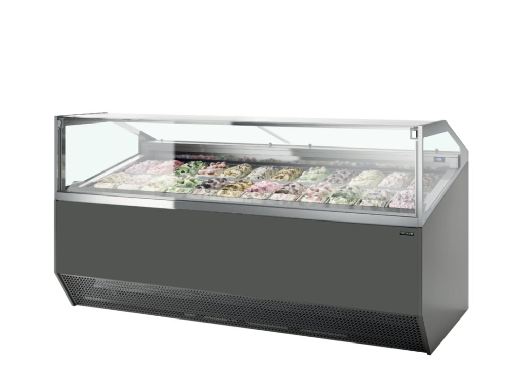 SUPER CAPRI 24 – Zmrzlinová vitrína, ventilované chlazení, na 24x 5 l vaničky, šedá
