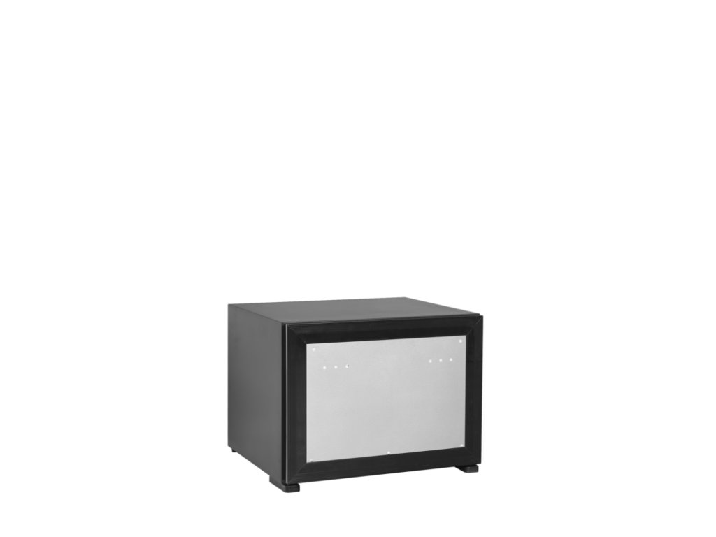 Bez přední části / rukojeti: Tento model je navržen bez přední části nebo rukojeti, což umožňuje jeho snadnou integraci do nábytku, jako je noční stolek. Tímto způsobem se minibar stává nenápadnou, ale praktickou součástí pokoje.
