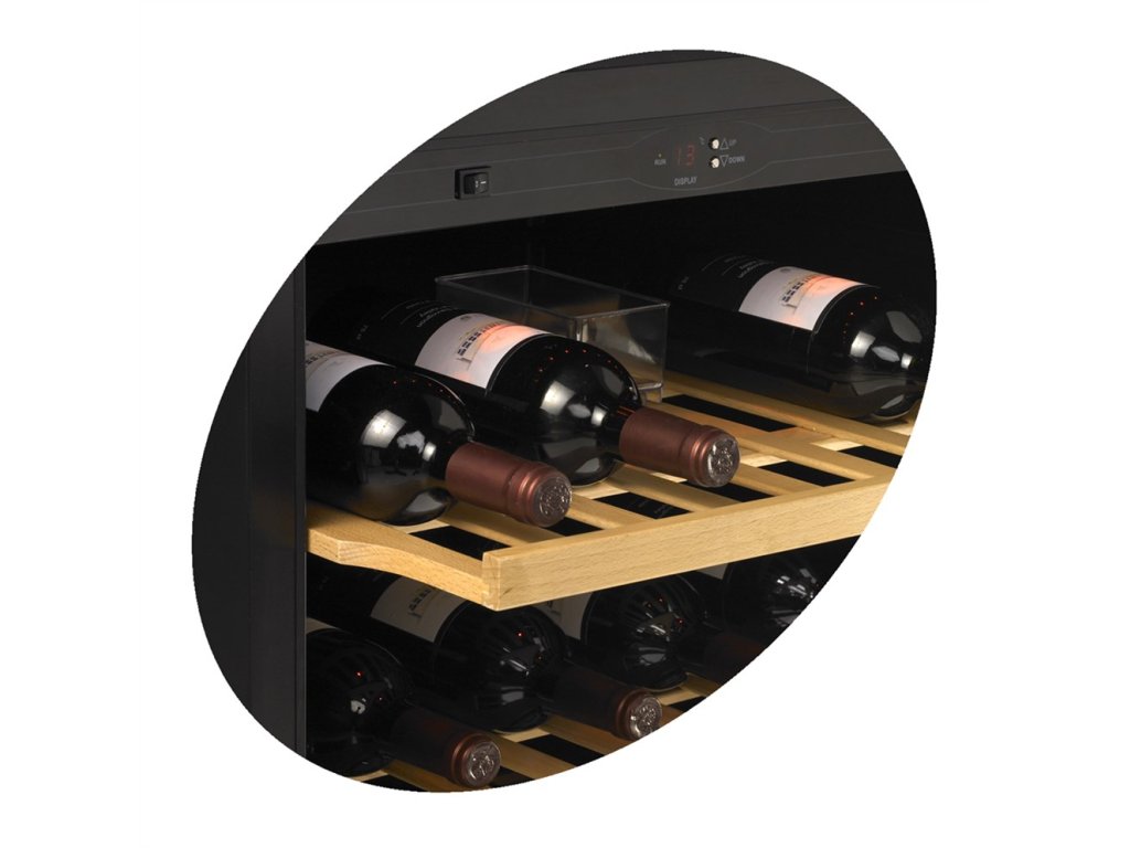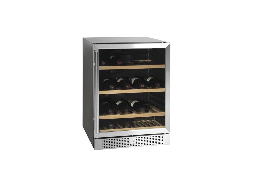 Dokonalý přehled o 45 lahvích díky plně výsuvným dřevěným policím. Úsporný provoz a elegantní nerezový design, který se stane ozdobou vašeho interiéru.