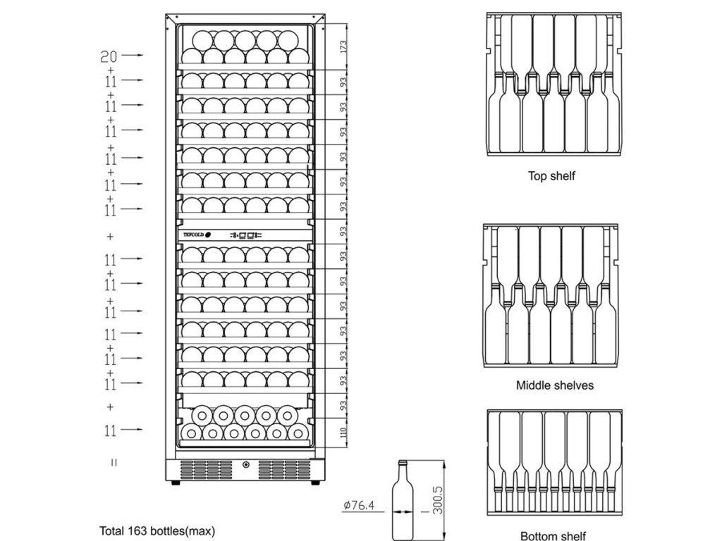 - Maximální kapacita: Uložte až 163 lahví a mějte i tu nejrozsáhlejší sbírku perfektně zorganizovanou a vždy připravenou.