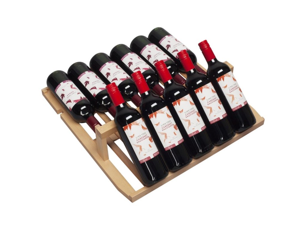 - Dřevěné police: Výsuvné dřevěné police poskytují stabilní a bezpečné uložení lahví, zatímco přídavné police pro prezentaci zboží lze zakoupit jako příslušenství.