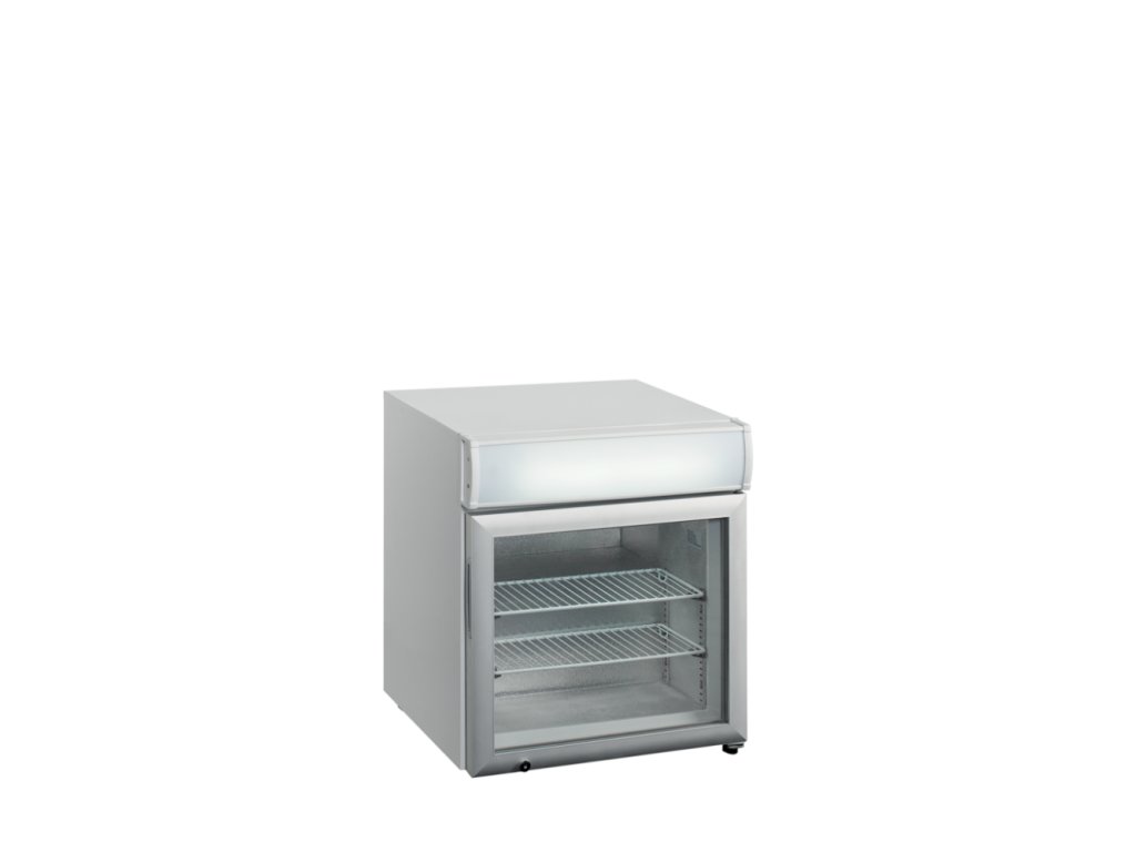 TEFCOLD UF 50 GCP – Mrazicí vitrína, stolní, statické chlazení, s reklamním panelem, 48 l, bílá