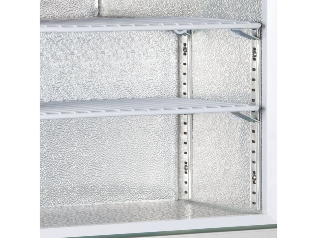 - Jasná viditelnost: Vyhřívané prosklené dveře v kombinaci s vnitřním LED osvětlením zajišťují, že vaše zboží bude vždy perfektně vidět bez jakékoliv námrazy či kondenzace.