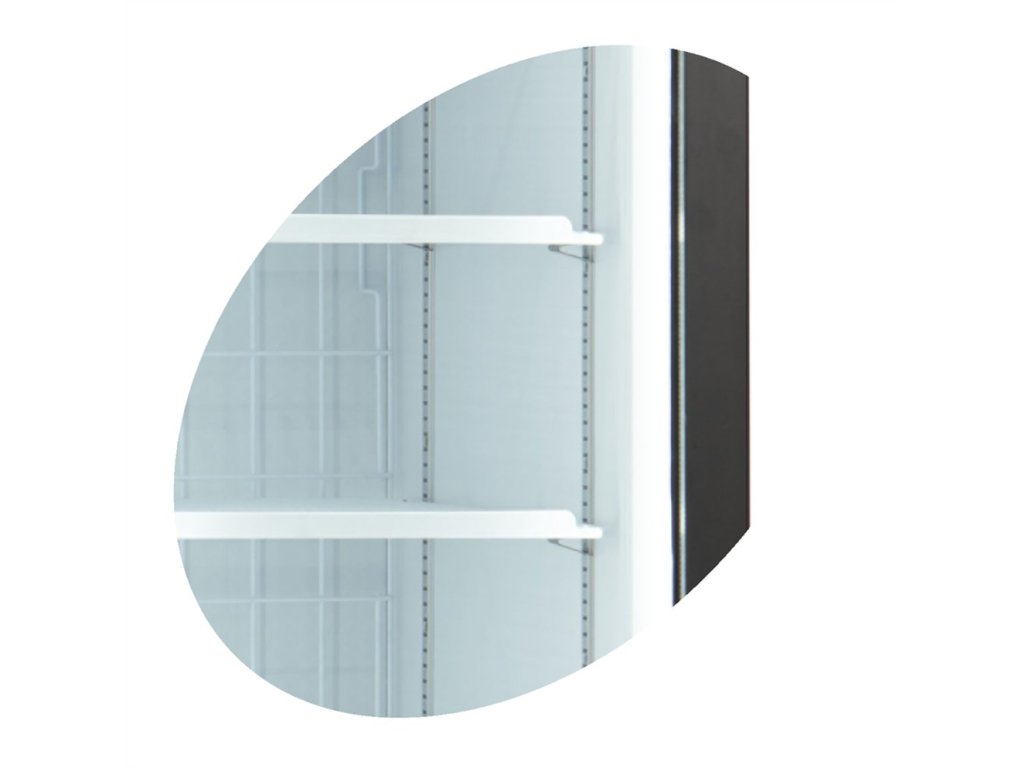 - LED osvětlení v rámu dveří: Zlepšuje viditelnost a atraktivitu vystavených produktů.