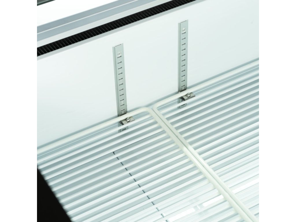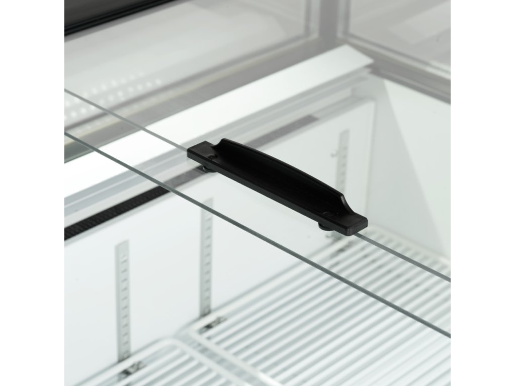 - Perfektní viditelnost: Prosklení ze všech čtyř stran a posuvná skleněná víka zajišťují dokonalý výhled na produkty a podporují impulzní nákupy.