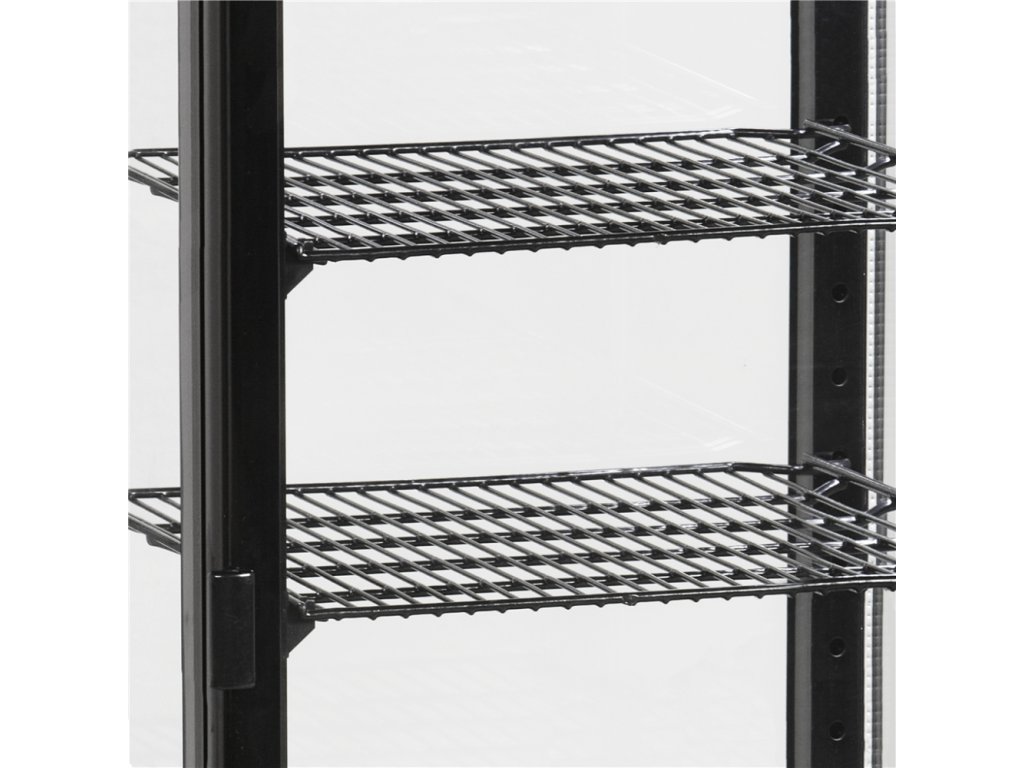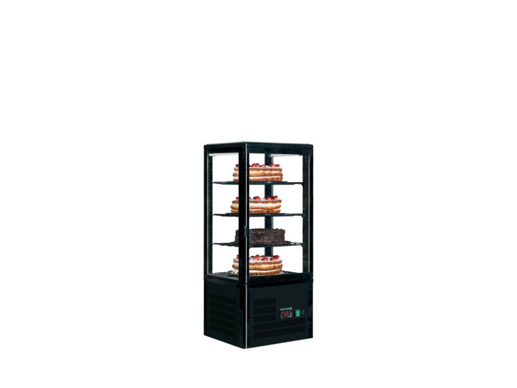 Tři patra pro zisk: Vystavte více, prodejte více! Díky třem nastavitelným policím a objemu 78 litrů můžete prezentovat mnohem širší sortiment – od různých druhů zákusků přes sendviče až po nápoje. To vše v elegantním černém rámu.