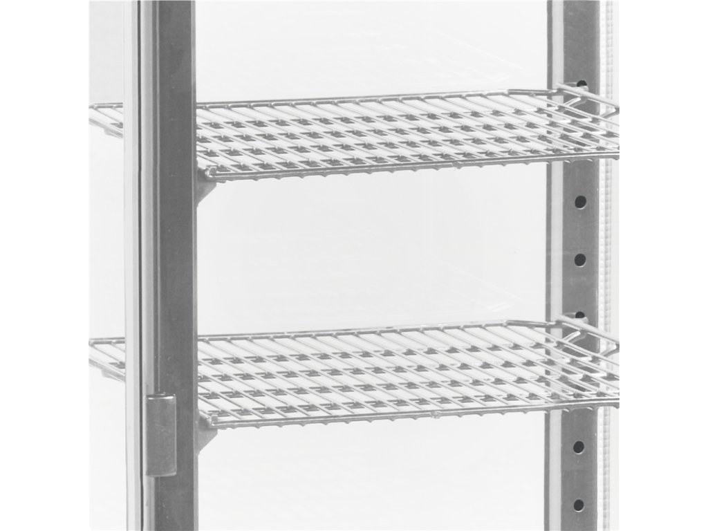 Tři patra elegance: Ukažte vše, co nabízíte! Tři nastavitelné police a objem 78 litrů vám umožní přehledně vystavit kompletní sortiment. Decentní šedý rám vytváří neutrální pozadí, na kterém skvěle vyniknou barvy a detaily vašich produktů.