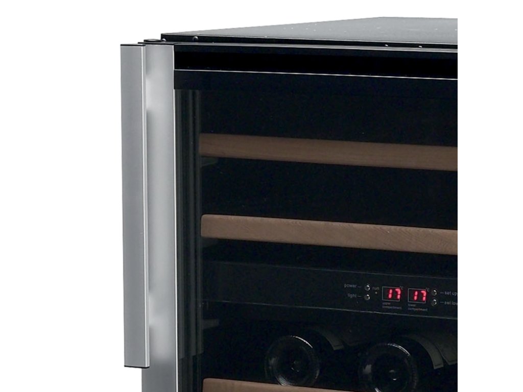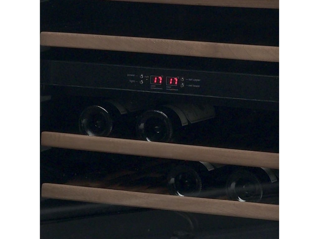 Dvouzónová péče pro 44 lahví. Elegantní kouřové sklo chrání a zdobí, LED světlo podtrhne vaši sbírku. Ideální pro znalce, kteří chtějí víc.