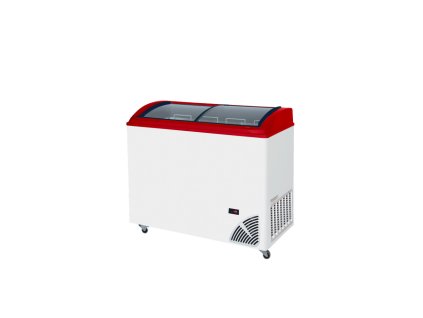 Výkonný prodejní magnet! Mrazák 212 l s oblým sklem a energickým designem. 4 koše, zámek, kolečka. Pro maximální a skvěle organizovaný prodej!